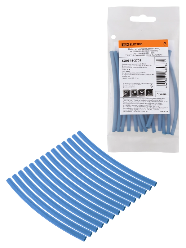 Набор трубок термоусаживаемых, клеевых "Моноцвет, синий 3,2/1,0 TDM"