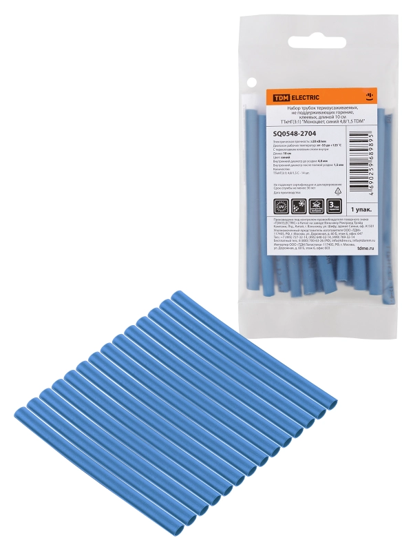 Набор трубок термоусаживаемых, клеевых "Моноцвет, синий 4,8/1,5 TDM"
