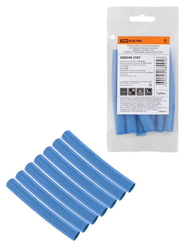 Набор трубок термоусаживаемых, клеевых "Моноцвет, синий 9,5/3,0 TDM"