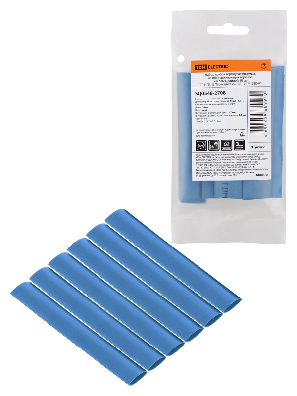 Набор трубок термоусаживаемых, клеевых "Моноцвет, синий 12,7/4,3 TDM"