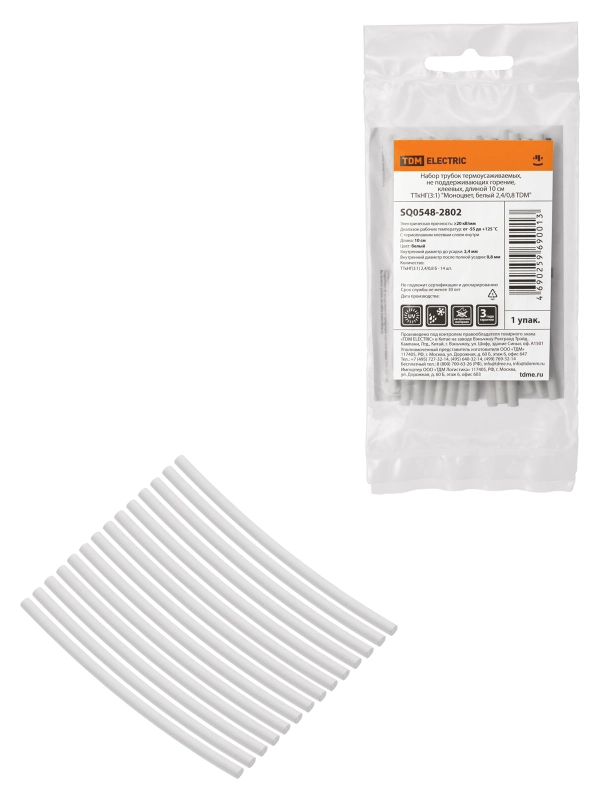 Набор трубок термоусаживаемых, клеевых "Моноцвет, белый 2,4/0,8 TDM"