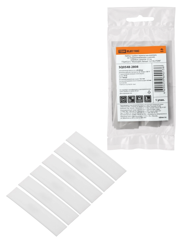 Набор трубок термоусаживаемых, клеевых "Моноцвет, белый 12,7/4,3 TDM"