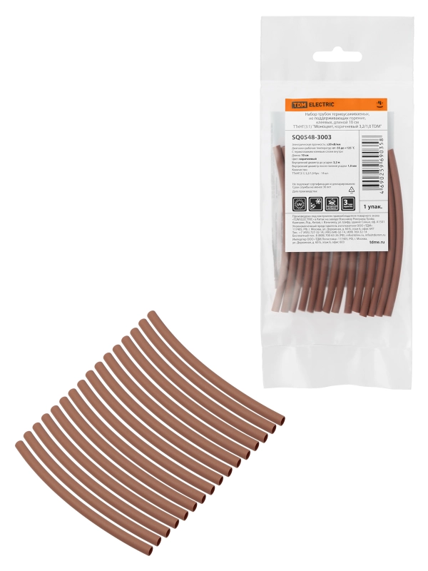Набор трубок термоусаживаемых, не поддерживающих горение, клеевых, длиной 10 см ТТкНГ(3:1) "Моноцвет, коричневый 3,2/1,0 TDM"