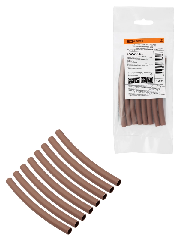 Набор трубок термоусаживаемых, не поддерживающих горение, клеевых, длиной 10 см ТТкНГ(3:1) "Моноцвет, коричневый 6,4/2,0 TDM"