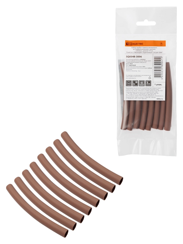 Набор трубок термоусаживаемых, не поддерживающих горение, клеевых, длиной 10 см ТТкНГ(3:1) "Моноцвет, коричневый 7,9/2,65 TDM"