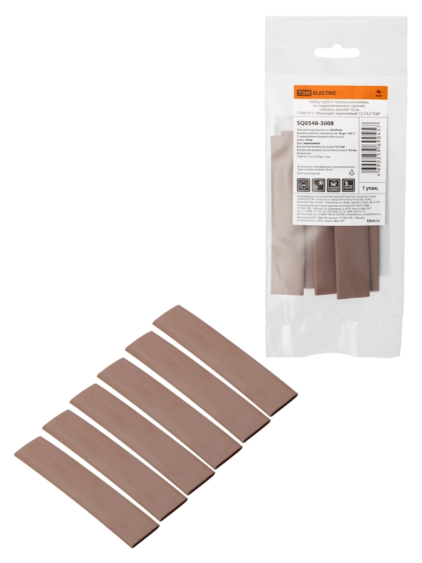 Набор трубок термоусаживаемых, не поддерживающих горение, клеевых, длиной 10 см ТТкНГ(3:1) "Моноцвет, коричневый 12,7/4,3 TDM"