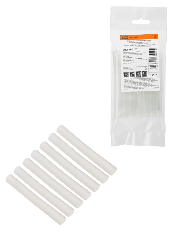 Набор трубок термоусаживаемых, не поддерживающих горение, клеевых, длиной 10 см ТТк(3:1) "Моноцвет, прозрачный 9,5/3,0 TDM"