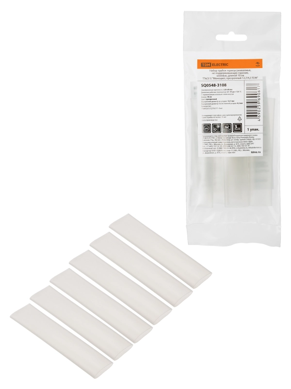 Набор трубок термоусаживаемых, не поддерживающих горение, клеевых, длиной 10 см ТТк(3:1) "Моноцвет, прозрачный 12,7/4,3 TDM"