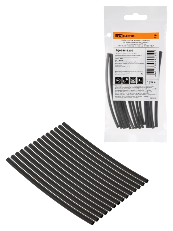 TDM Набор трубок термоусаживаемых, клеевых "Моноцвет, черный 2,4/0,8"