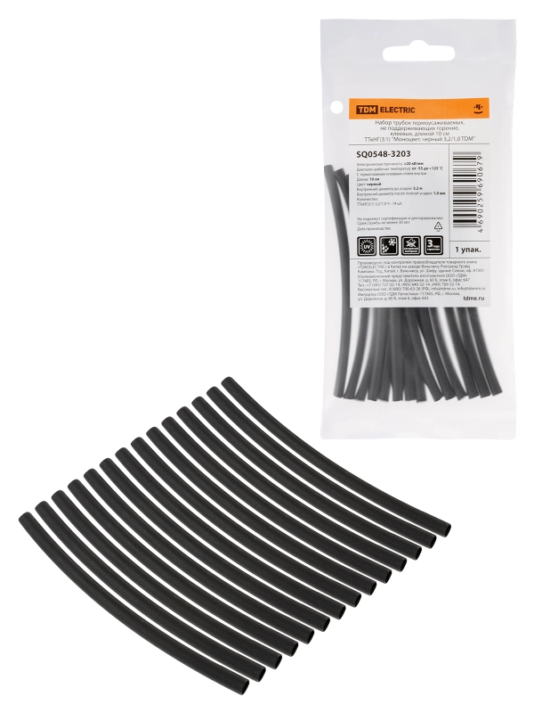 TDM Набор трубок термоусаживаемых, клеевых "Моноцвет, черный 3,2/1,0"