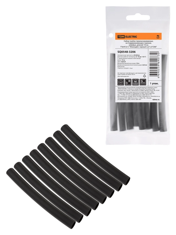 TDM Набор трубок термоусаживаемых, клеевых "Моноцвет, черный 7,9/2,65"