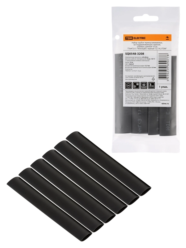 TDM Набор трубок термоусаживаемых, клеевых "Моноцвет, черный 12,7/4,3"