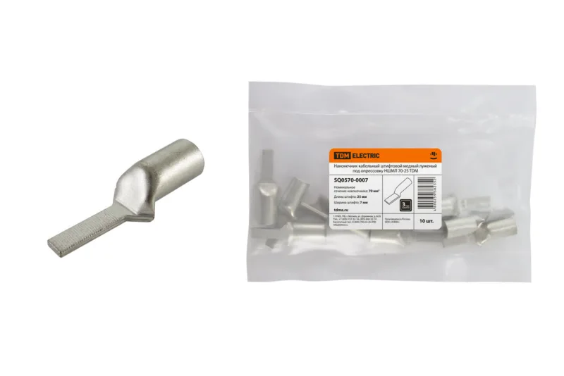 Наконечник кабельный штифтовой медный луженый под опрессовку НШМЛ 70-7x25 TDM