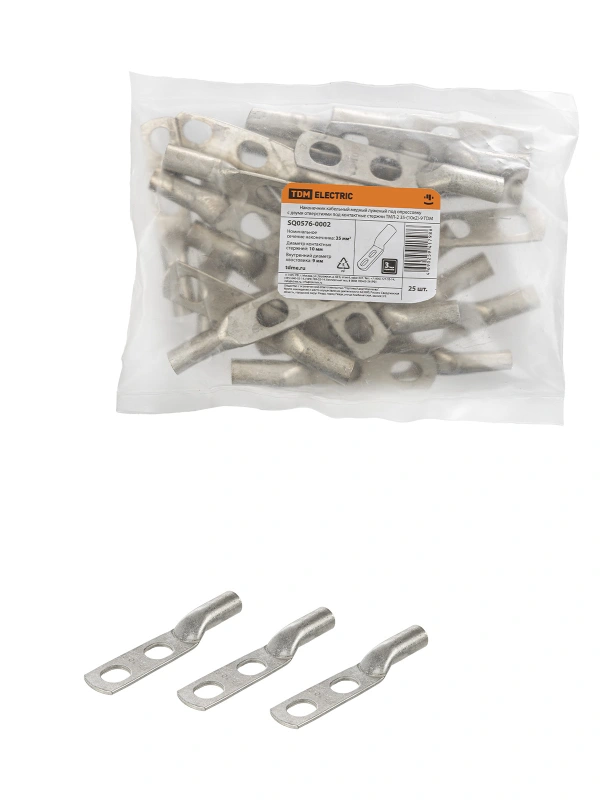 Наконечник кабельный медный луженый под опрессовку с двумя отверстиями под контактные стержни ТМЛ-2 35-(10х2)-9 TDM
