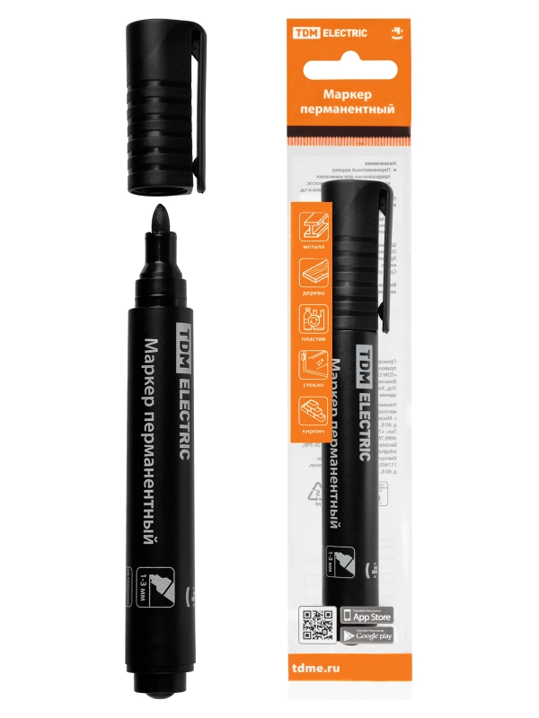 TDM Маркер перманентный 1-3 мм, черный (пакет) круглый наконечник