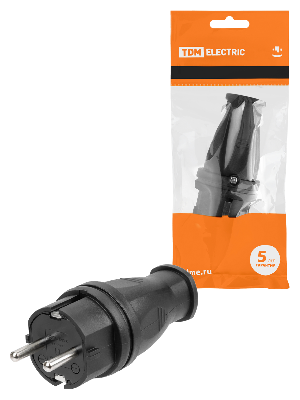 Вилка прямая каучук 2Р+РЕ 16А 250В IP44 TDM