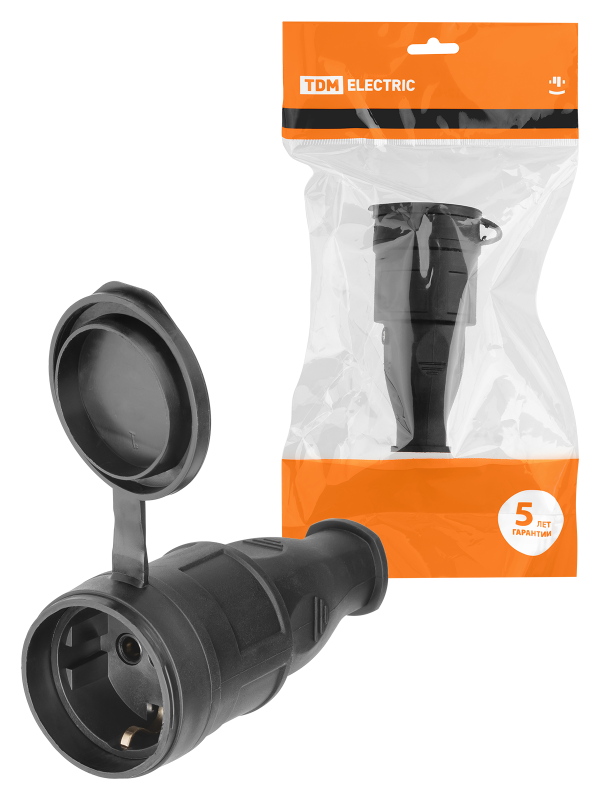 Розетка переносная с заглушкой каучук 2Р+РЕ 16А 250В IP44 TDM