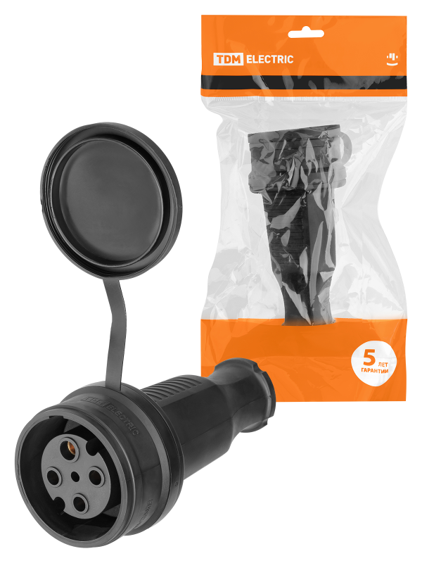 Разъем с заглушкой каучук 3Р+РЕ 32А 380В IP44 TDM
