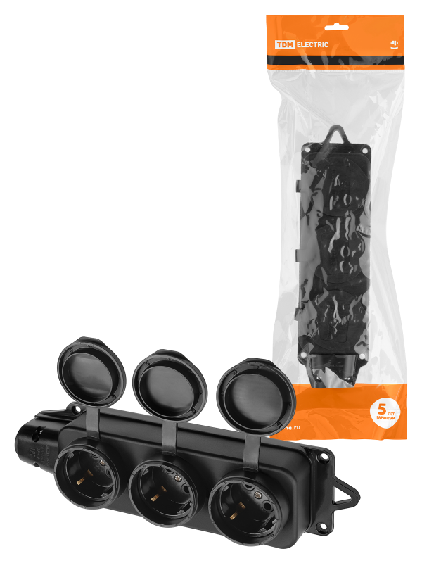 Розетка трехместная с заглушками каучук 2Р+РЕ 16А 250В IP44 TDM