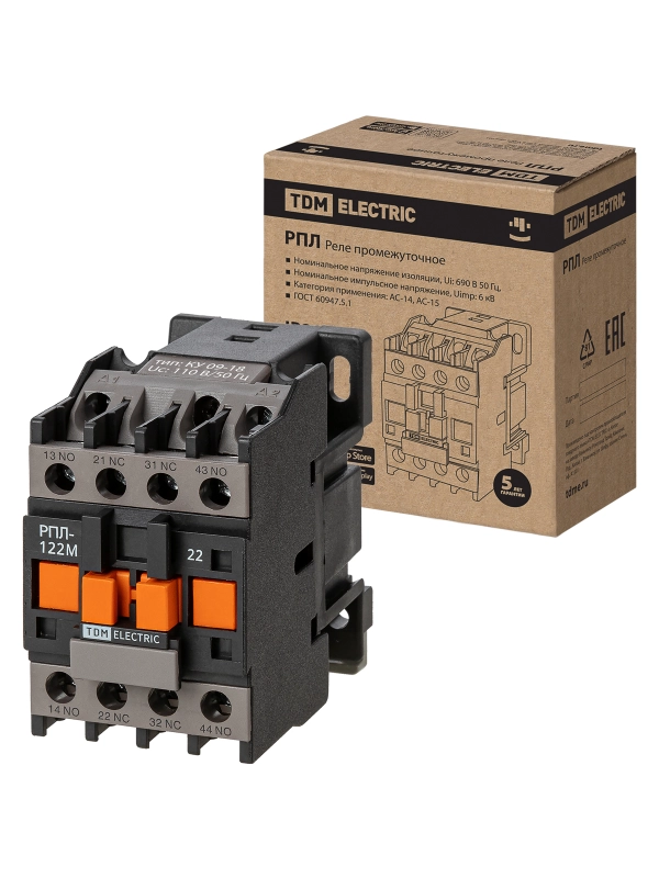 РПЛ-122М УХЛ4Б, 16А, 110В 50Гц, 2НО+2НЗ TDM
