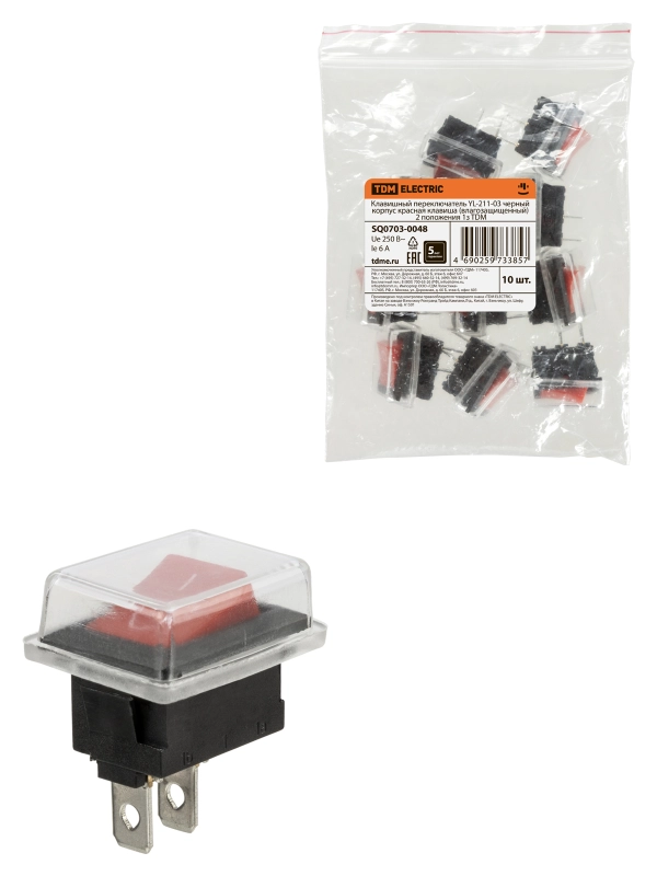Клавишный переключатель YL-211-03 черный корпус красная клавиша (влагозащищенный) 2 положения 1з TDM
