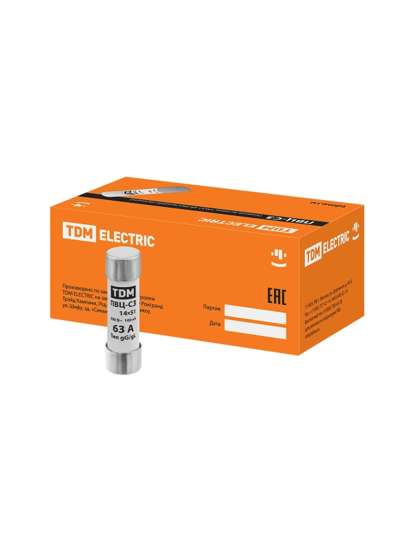 Плавкая вставка ПВЦ-С3 14х51 aR (быстродействующая) 63А TDM