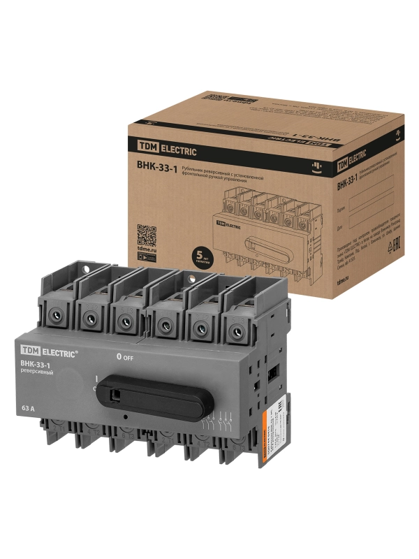 Рубильник ВНК-33-1 3П, 63 А, реверсивный с установленной фронтальной ручкой управления TDM