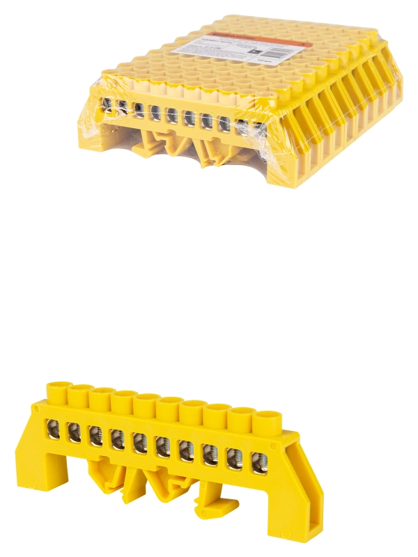 Шина "PE" "земля" в желтом изоляторе на DIN-рейку 8x12мм 10 групп TDM