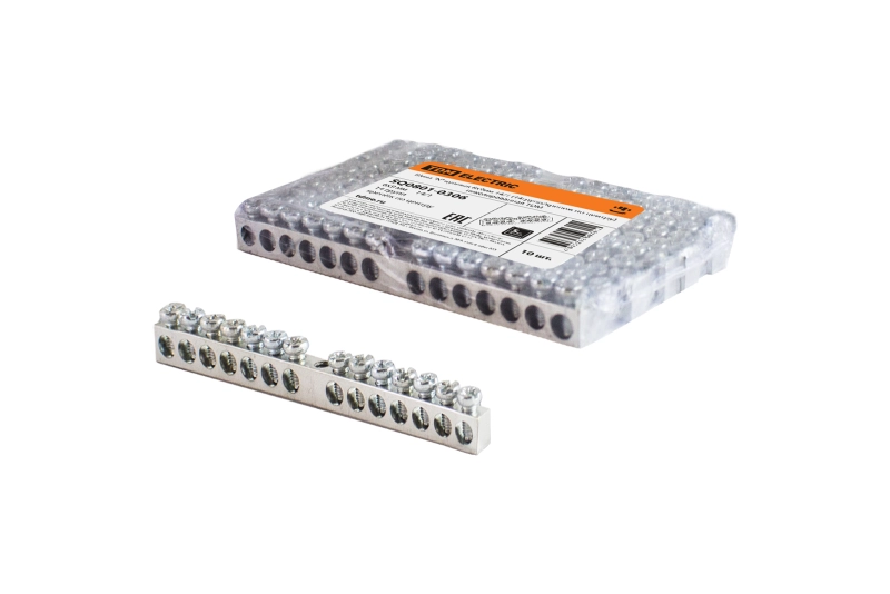 Шина "N" нулевая 6х9мм 14/1 (14групп/крепеж по центру) никелированная TDM