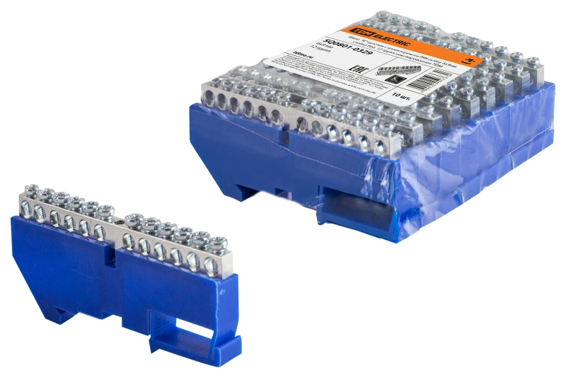 Шина "N" нулевая с изолятором на DIN-рейку 6x9мм стойка бол. 12 групп никелированная TDM