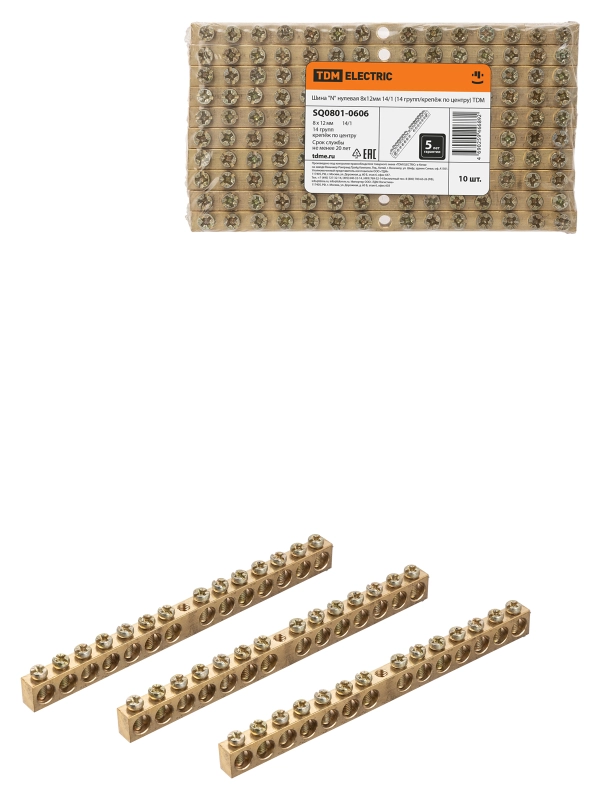 Шина "N" нулевая 8х12мм 14/1 L140/D7,5 (14 групп/крепеж по центру) TDM