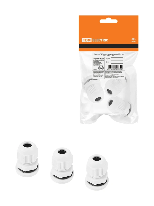 Сальник PG 7 диаметр проводника 3-6 мм IP54 в инд. упак. по 3 шт. TDM