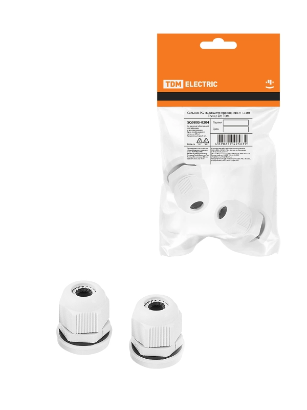 Сальник PG 16 диаметр проводника 9-12 мм IP54 в инд. упак. по 2 шт. TDM
