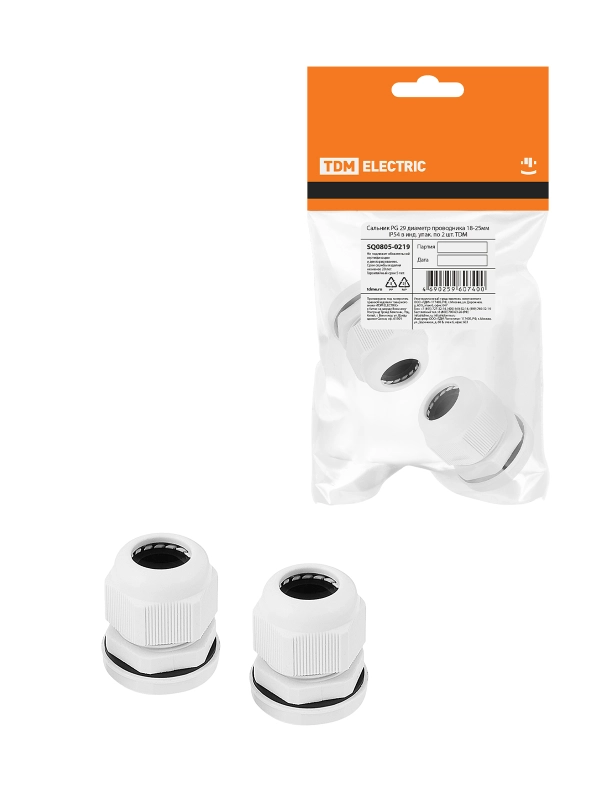 Сальник PG 29 диаметр проводника 18-25мм IP54 в инд. упак. по 2 шт. TDM