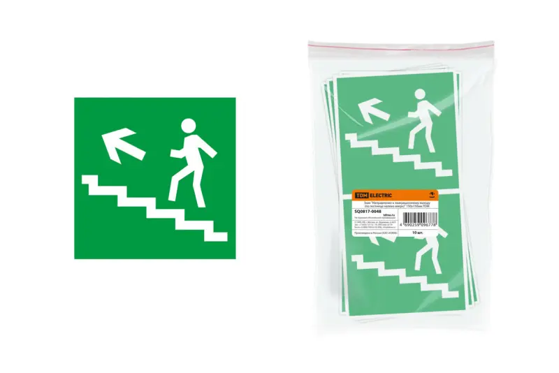 Знак "Направление к эвакуационному выходу (по лестнице налево вверх)" 150х150мм TDM