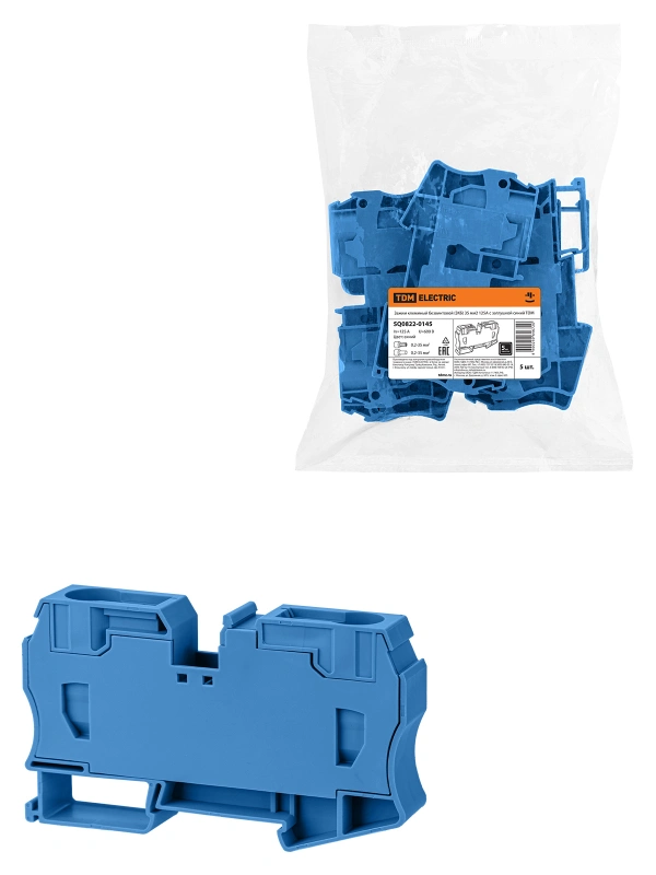TDM Зажим клеммный безвинтовой (ЗКБ) 35мм2 125А с заглушкой синий