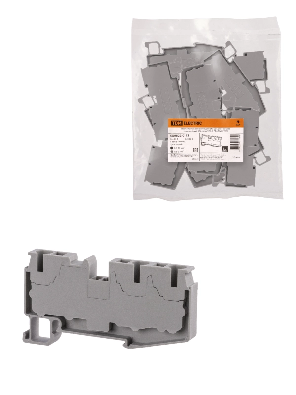 Зажим клеммный безвинтовой ЗКБ быстрого зажима 3 вывода 6 мм2 40А серый (Ph-C PT 6-TWIN) TDM
