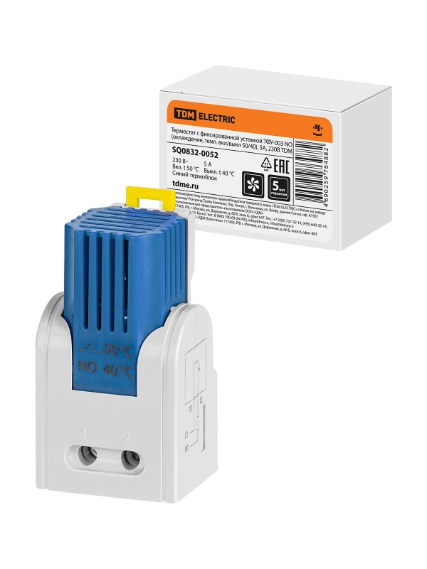 Термостат с фиксированной уставкой ТФУ-003 NО (охлаждение, темп. вкл/выкл 50/40), 5 А, 230 В TDM