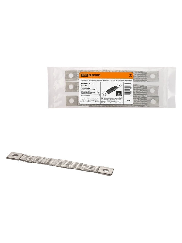 TDM Проводник заземления плоский луженый ПЗ 25-500 (3 шт. упак) ТDM