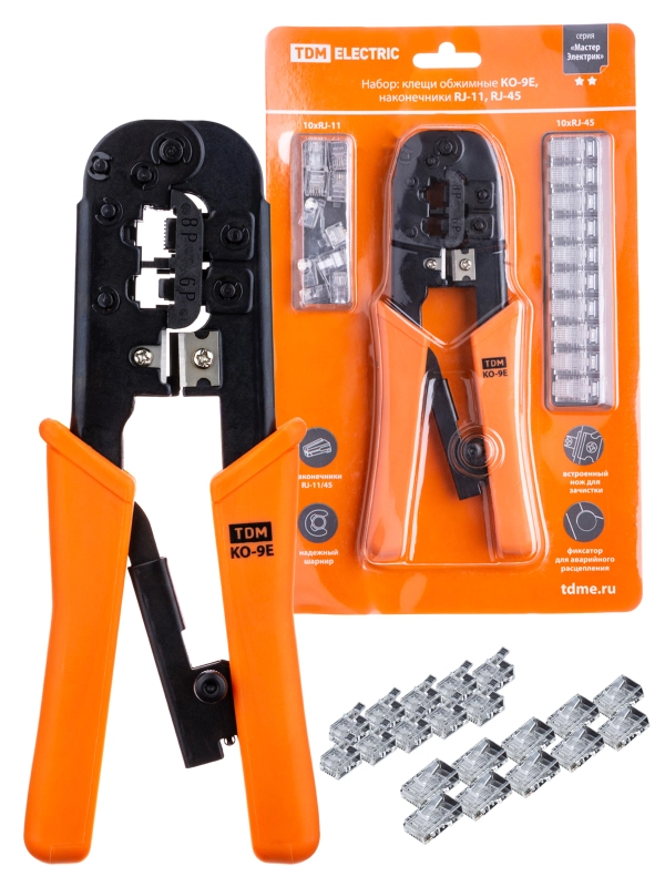 Набор: клещи обжимные KO-9E (RJ-11/45), наконечники RJ-11(10 шт), RJ-45(10 шт), «МастерЭлектрик» TDM