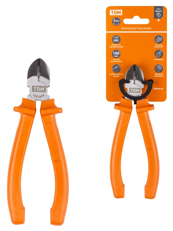 Бокорезы (кусачки), с пластиковыми рукоятками, углеродистая сталь, 160 мм, серия "Гранит" TDM