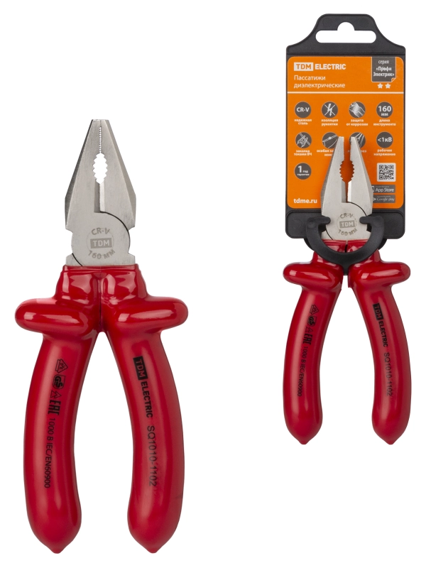 Пассатижи диэлектрические, 160 мм, 1000 В, CR-V, «ПрофиЭлектрик» TDM