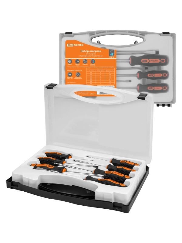Набор отверток 7 шт.: SL3х75;5х100;6х125;8х150, PH:0х75;PH1х100;PH2х125 (чемодан), CR-V "Алмаз" TDM