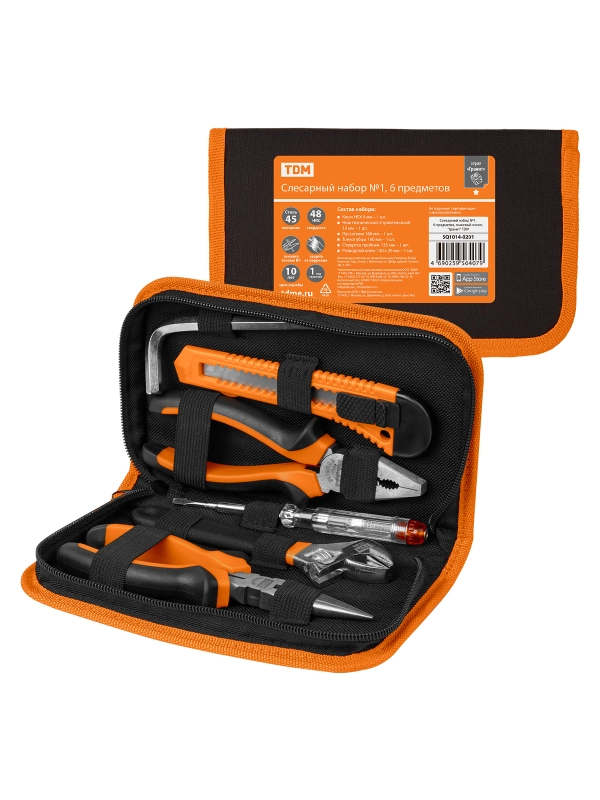 Слесарный набор №1, 6 предметов, тканевый чехол, "Гранит" TDM