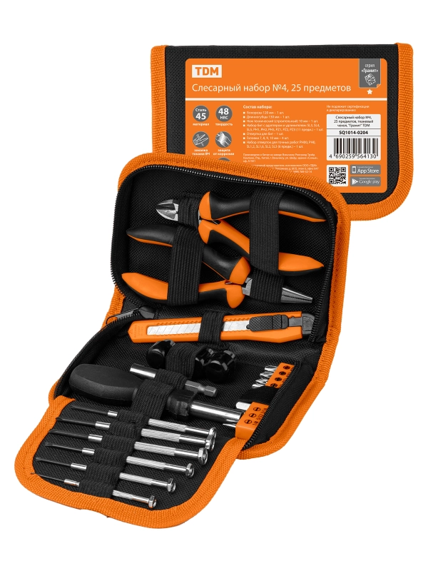Слесарный набор №4, 25 предметов, тканевый чехол, "Гранит" TDM