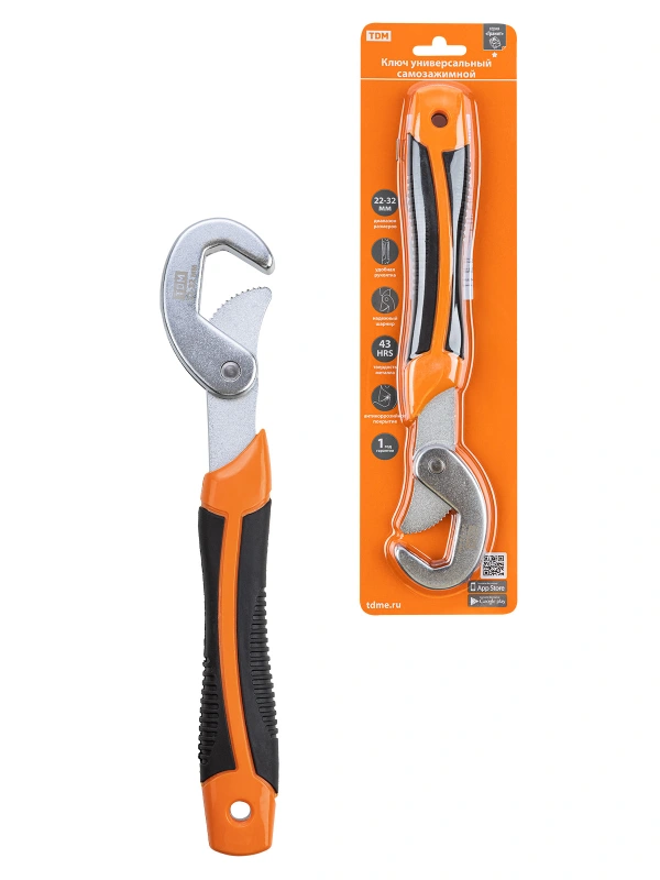 Ключ универсальный самозажимной 22-32 мм, прорезиненная рукоятка, блистер, "Гранит" TDM