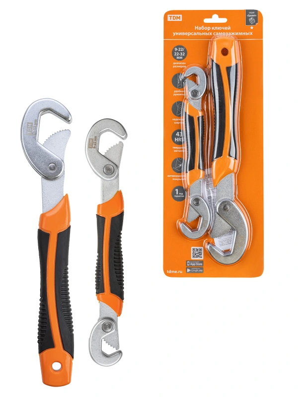 Набор ключей универсальных самозажимных 9-22/22-32 мм, прорезиненные рукоятки, блистер, "Гранит" TDM