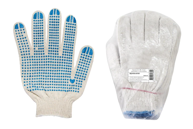 Перчатки х/б с ПВХ , "Точка", трикотажные, 7, 6 пар, Народная