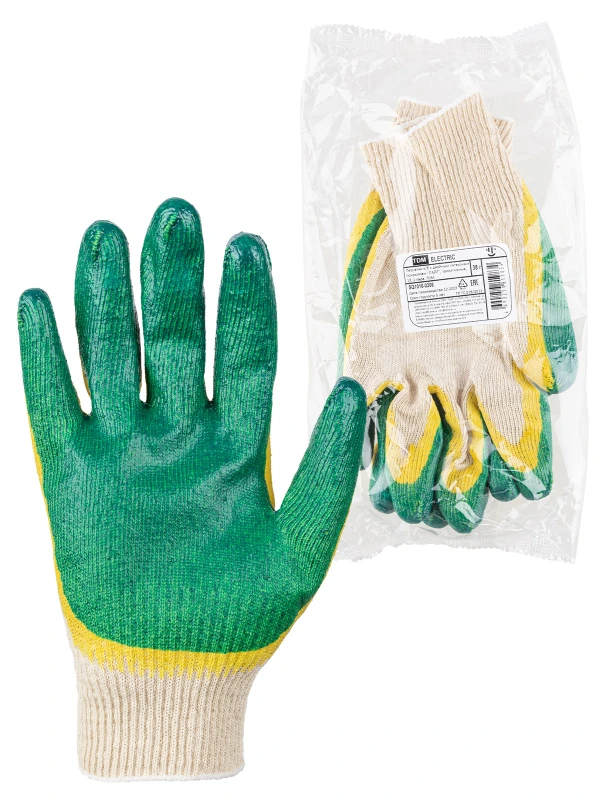 Перчатки х/б с двойным латексным покрытием "ЛАЙТ", трикотажные, 13, 1 пара, TDM