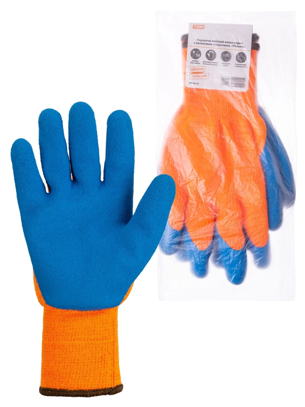 Перчатки плотной вязки акрил с латексным покрытием, "Рельеф", оранж., 9, 10 кл., 116 г, 1 пара, TDM